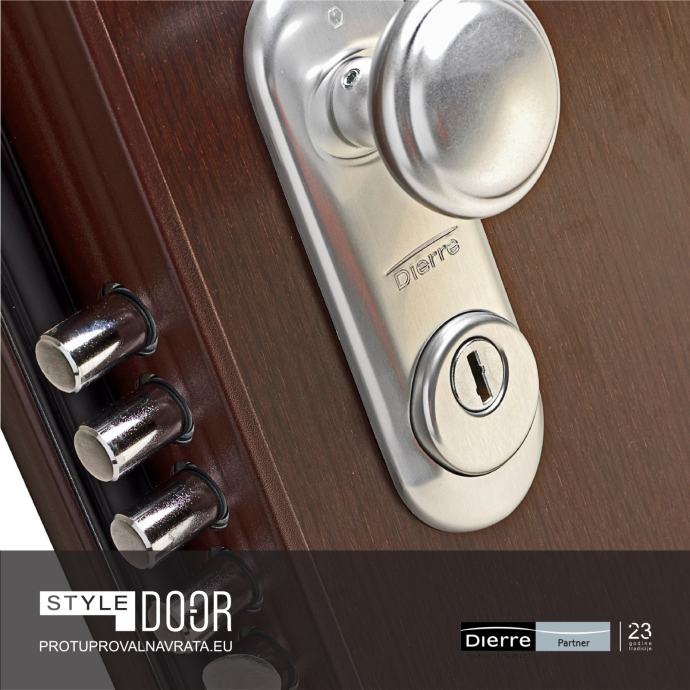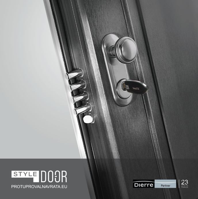 ASSO FIRECUT 5 CIL. EI2 30, PROTUPROVALNO – PROTUPOŽARNA VRATA DIERRE, sigurnosna cilindar brava, cilindar NEW POWER, (5 standardnih ključeva), klasa 3 po EN 1627, Rw=38 dB / max. 40 dB (zvučna izolacija), U=1,8 W/m2 ·°K (koeficijent prolaska topline), vatrootpornost T-30, 7 aktivnih / 4 fiksna klina, gumena brtva + termoekspandirajuća brtva, krilne letvice u dekoru panela, blok devijator, špijunka 200°, graničnik otvaranja (zasun), metlica, paneli u standardnim dekorima, rozete DiErre design dvodjelne, boja bronce ili srebra, mat.