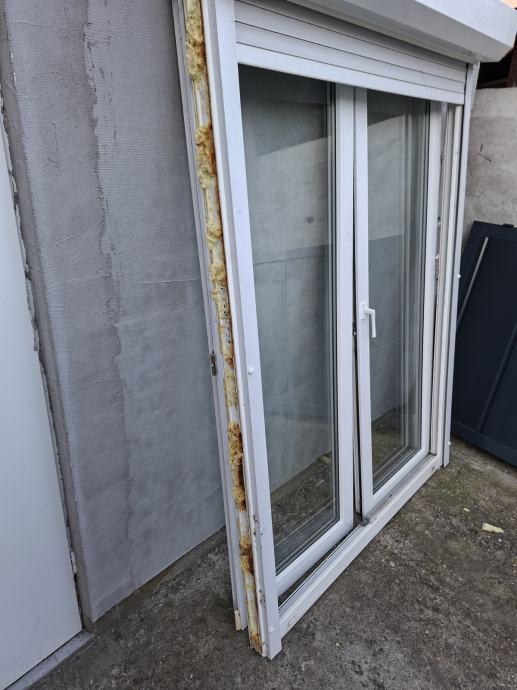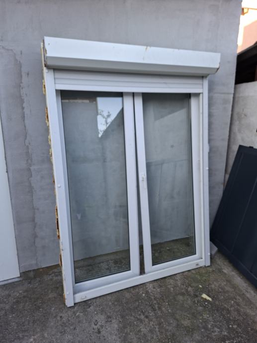Pvc dvokrilna balkonska vrata, dimenzija 150x212 s roletom. Dvoslojno staklo, rastavljeno i spremno za odvoz. Moguć dogovor oko cijene.