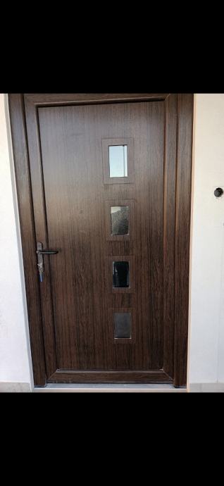 Prodajem pvc ulazna vrata sa svjetlarnikom, polovna,dobro očuvana.Dimenzije sa svjetlarnikom su 116x245