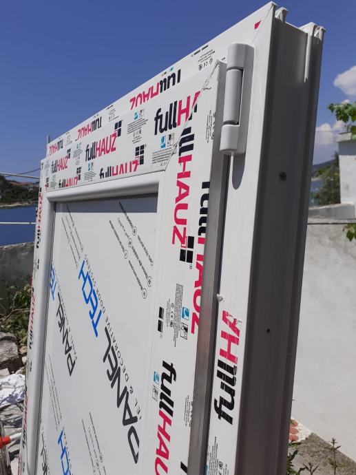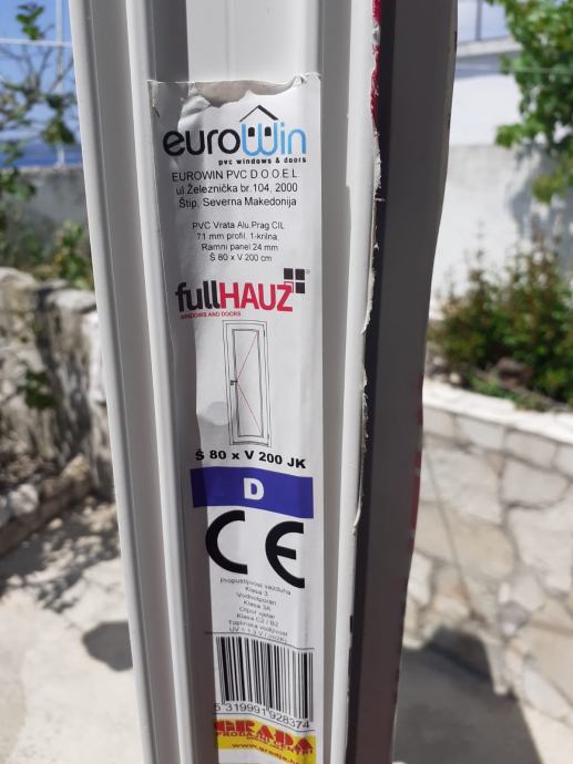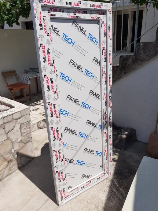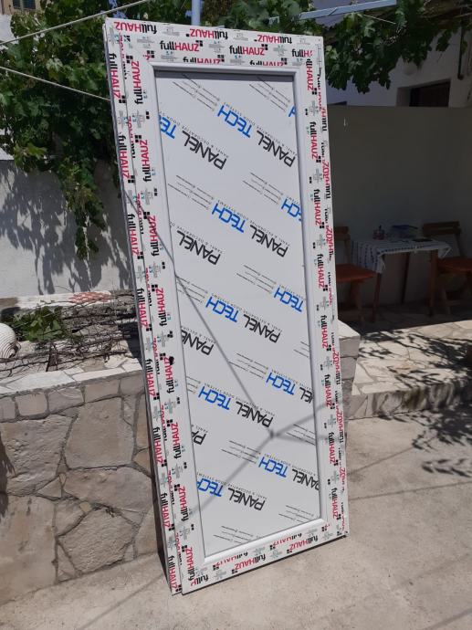 Nova, neupotrebljena PVC vrata. Uz njih ide kvaka i brava. Nalaze se na otoku Drvenik Veli.