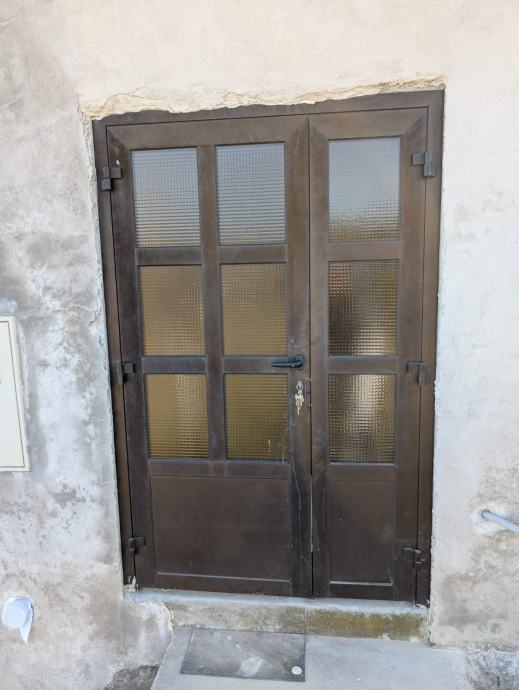 Prodajem rabljena potpuno funkcionalna dvokrilna ALU vrata s armaturnim (žičanim) staklom.