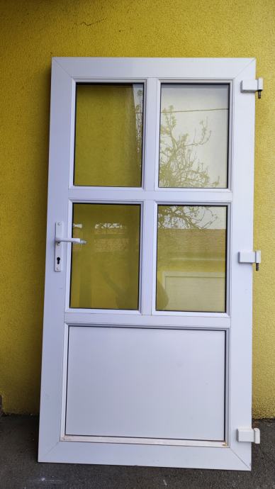 PVC ulazna vrata, 110x205 cm, Salamander PVC okviri, masivna i teška vrata, dvoslojno IZO staklo.
