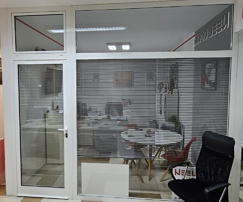 Prodajemo bijela unutarnja aluminijska vrata sa fiksnim djelom ukupne dimenzije 320x280cm. Sama vrata su dimenzije 90x210cm.