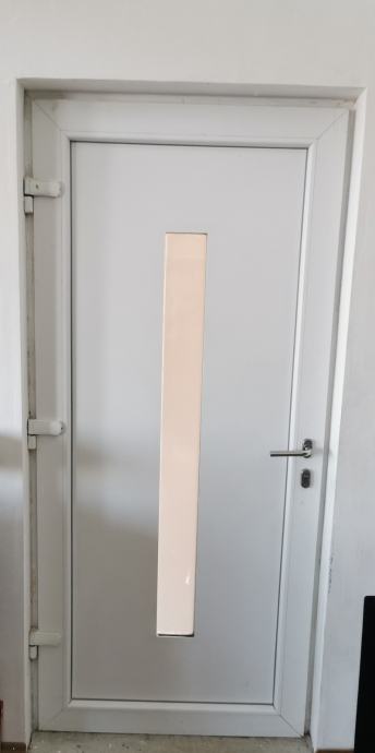 Prodajem PVC ulazna vrata sa okvirom, bravom, te aluminijskim pragom. Dimenzije 100x210cm. Vrata su iznutra bijele boje, izvana antracit. Vrata su u dobrom stanju. Puknuti okvir kod vađenja, ali se da spojiti. Samo osobno preuzimanje.