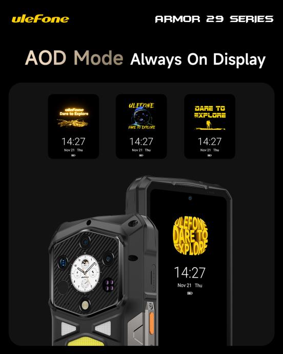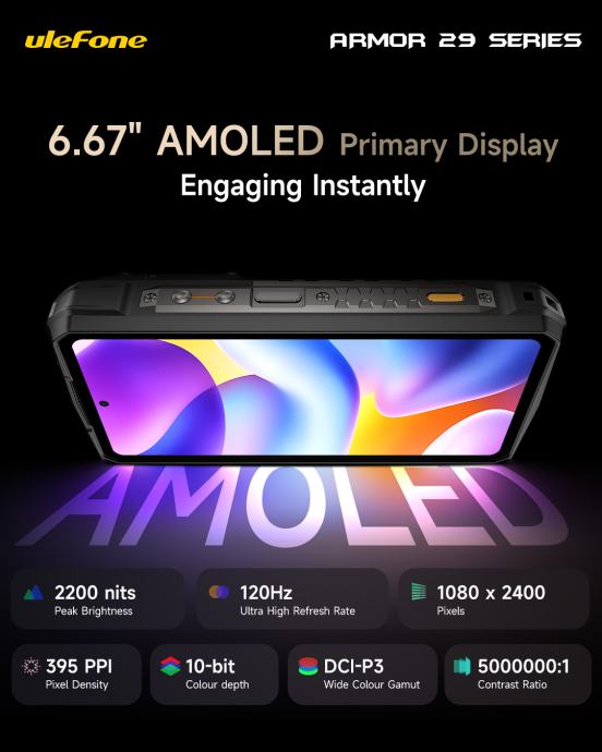 Hardverski, Armor 29 Ultra je više nego sposoban: pokreće ga moćan čipset MediaTek Dimensity 9300+, uz 16 GB RAM-a i čak 1 TB interne memorije (uz mogućnost proširenja microSD karticom do 2 TB). To znači da telefon neće posustati ni kod zahtjevnijih zadataka — igranja, montaže, multitaskanja, pa čak i za naprednije aplikacije. Glavni ekran je AMOLED, 6,67 inča, sa 120 Hz osvježavanjem — brz i fluidan za navigaciju, aplikacije i video — a tu je i sekundarni mali AMOLED zaslon straga, zgodan za obavijesti ili brzo gledanje osnovnih informacija bez otključavanja glavnog zaslona.