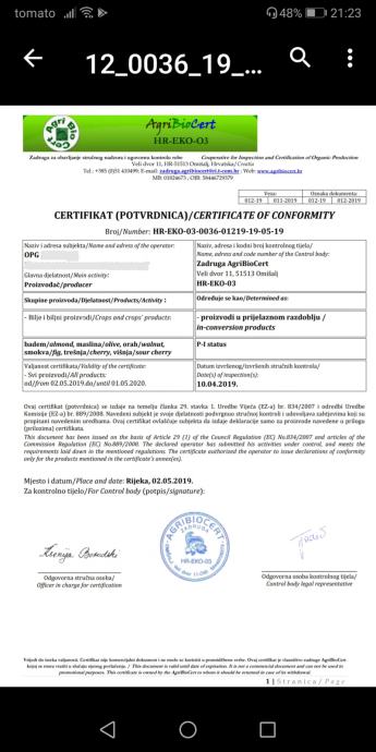 Ulje je iz okolice Marine pokraj Trogira sorta oblica bio proizvodnja.