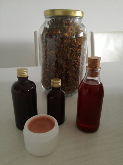 Ovi pripravci izrađivani su od najkvalitetnijih sastojaka – isključivo cvjetovi i pupoljci gospine trave brani na čistini Prigorja, istarsko hladno prešano maslinovo ulje (Poreč), prigorski domaći nerafinirani pčelinji vosak za melem. Kvaliteta očita - gust i tamnocrven, prava purpurna boja, nije rijedak i svijetao kao kod izrađivača istog macerata u suncokretovom ulju.
