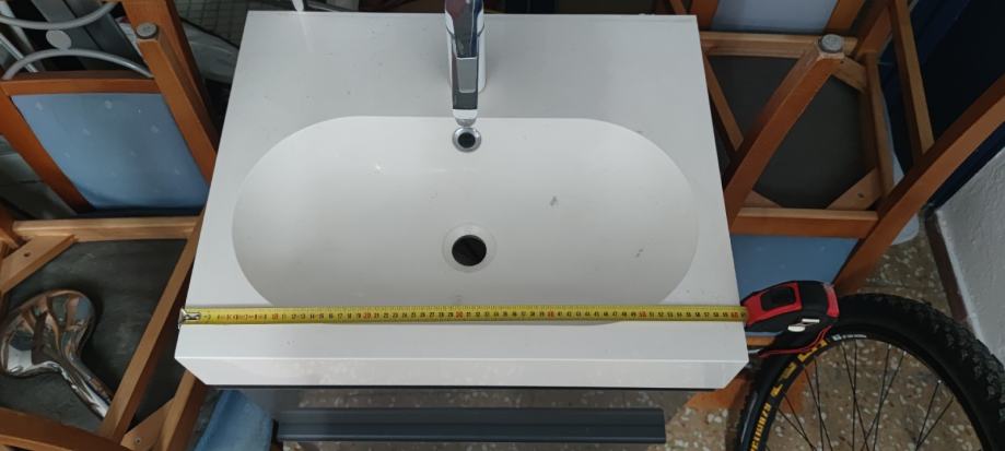 Komplet ispravan i očuvan IKEA element sa dvije ladice (sivi vioski sjaj), umivaonik, slavina i sifon. Mogućnost montiranja elementa na zid ili na nogice.