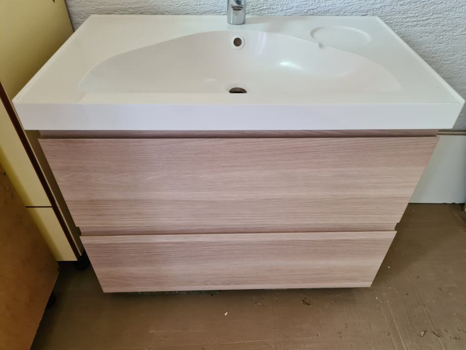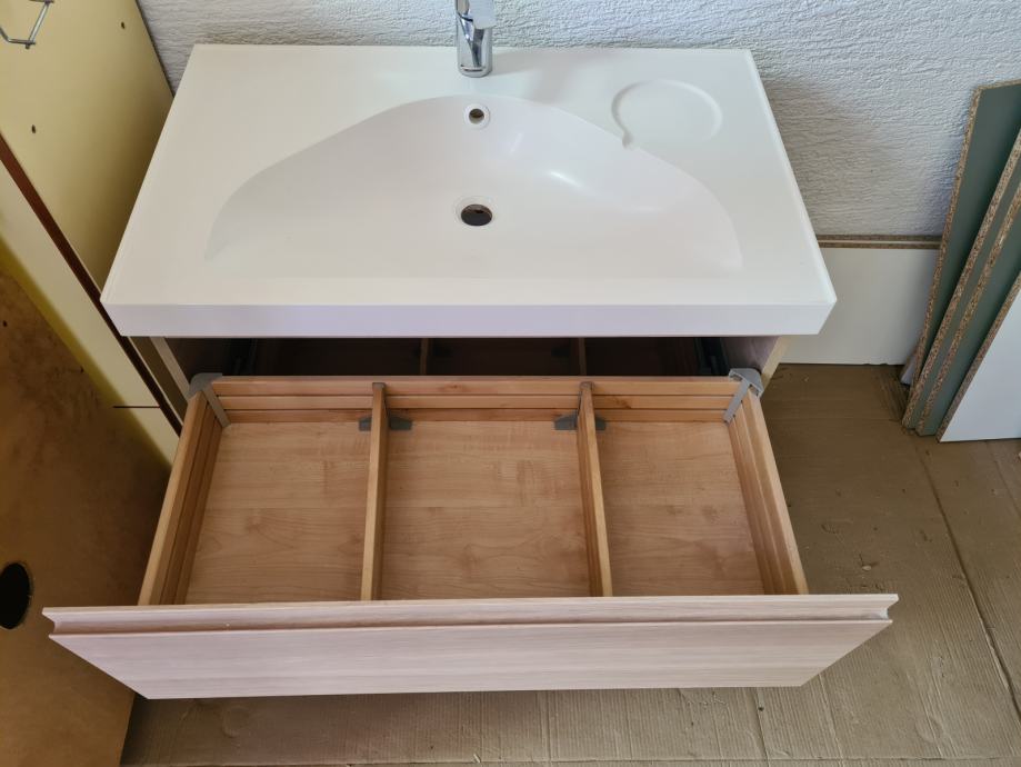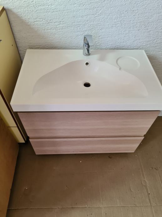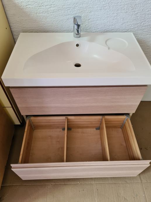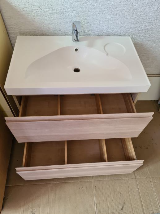 Prodajem kupaonski element sa umivaonikom, 81x49x64 cm (visina), dvije ladice, sačuvan, soft close ladice, montaža na zid (viseći)