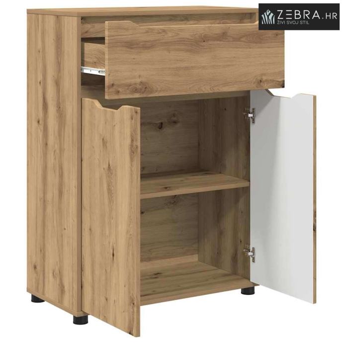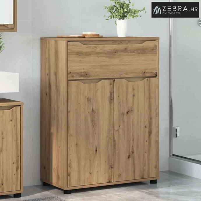 Kvalitetno konstruirano drvo: Ormar je rađen od visokokvalitetnog konstruiranog drva, s glatkom teksturom i modernim izgledom. Ovaj materijal je otporan na vlagu, što ga čini savršenim za kupaonice gdje je vlaga česta. Osim toga, konstruirano drvo jamči dugovječnost i očuva svoj svjež izgled godinama. Praktična rješenja za pohranu: Sa ladicama na kugličnim ležajevima i vratima na šarkama, ovaj ormar nudi fleksibilne opcije za pohranu. Ladice se lako otvaraju za jednostavan pristup, dok vrata čuvaju tvoje potrepštine urednima. Police od izdržljivih materijala omogućuju pohranu visokih i glomaznih predmeta. Podesive funkcije: Police se lako podešavaju po visini, tako da možeš prilagoditi ormar svojim potrebama. Ova funkcija dodaje svestranost, čineći ormar prilagodljivim za sve od visokih sredstava za čišćenje do posloženih ručnika. Jednostavno održavanje: Održavanje ovog ormara je lako, treba ga samo obrisati da bi uvijek izgledao besprijekorno. Kada ga sastaviš, osigurava stabilnost i sprječava prevrtanje kad se pričvrsti na zid. Prilagodljiv moderan stil: S modernim stilom koji kombinira jednostavnost i funkcionalnost, ovaj ormar se savršeno uklapa u bilo koju kupaonicu, dodajući vrijednost i estetiku dok ostaje praktičan. Boja: Umjetnički hrast