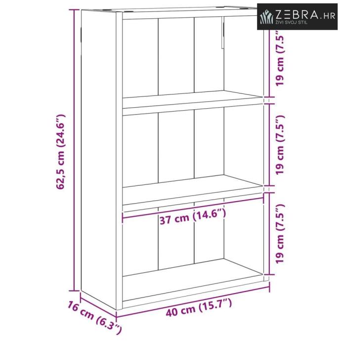 Sveukupne dimenzije: 40 x 16 x 62,5 cm (D x Š x V)