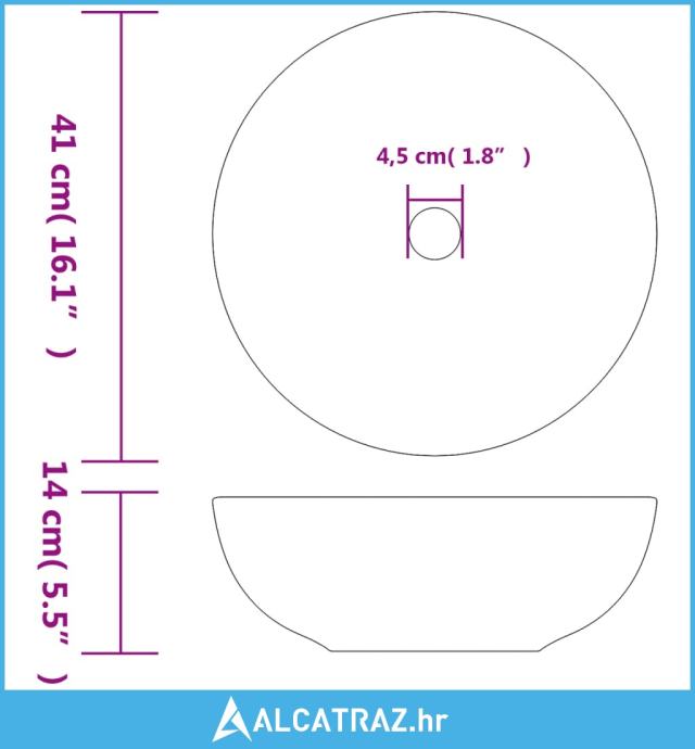 - Ukupne dimenzije: 41 x 14 cm (promjer x v) x V)