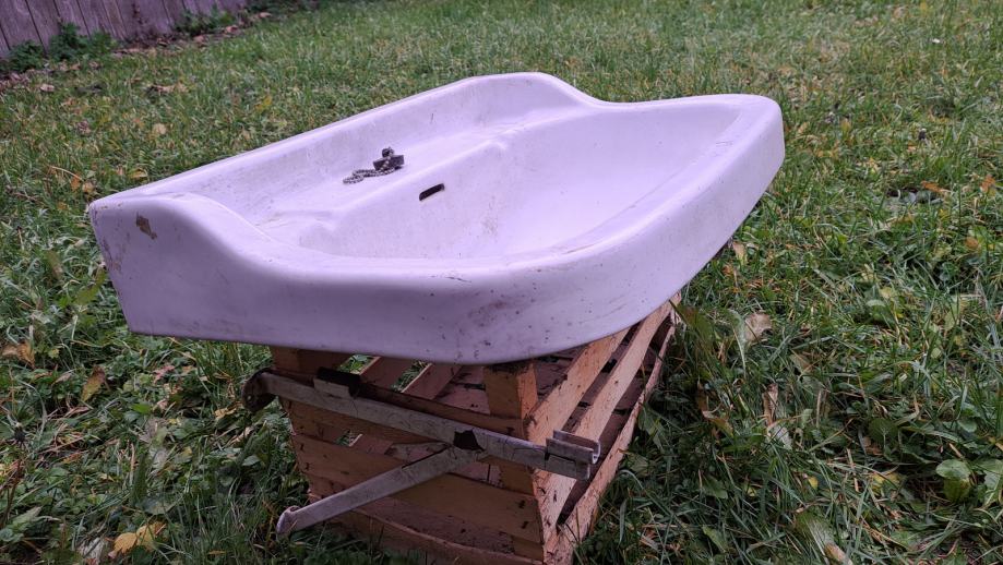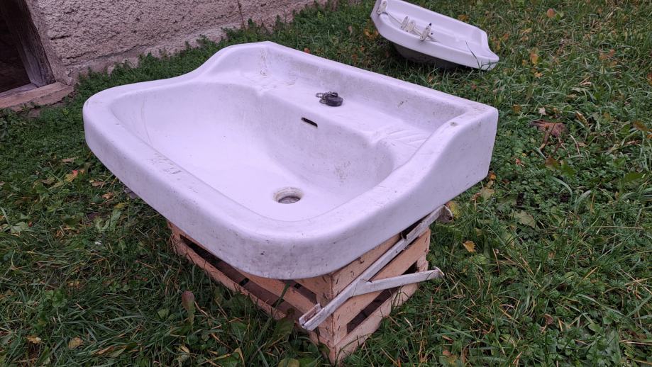Prodajem keamički umivaonik s dvije metalne konzole na kojima stoji. Veličina umivaonika je 65 x 50 cm. Umivaonik jeproizveden prije 55 godina i u funkcionalnom je stanju. Od oštećenja ima lasastu pukotinu blizu izljeva.