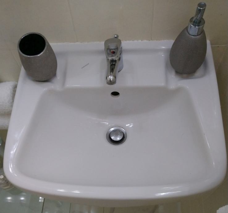 UMIVAONIK/LAVANDIN ODLICAN 60X40 CCA SA KOMPLETNIM SIFONOM I SPINOM/MJESALICOM. PLUS SPINA TUSA I TUS SA CIJEVI HANSGROHE.