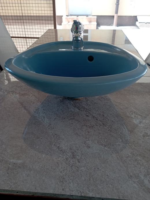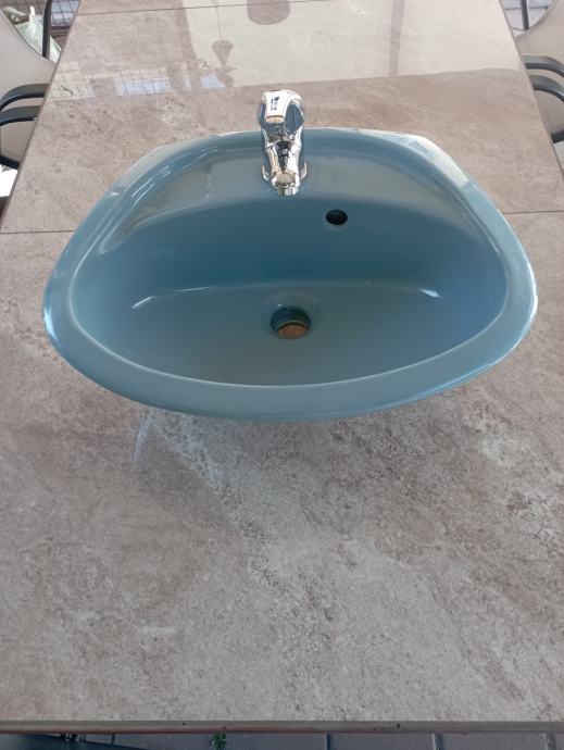 Plavi i neoštećeni umivaonik sa skoro novom mješalicom prodajem.