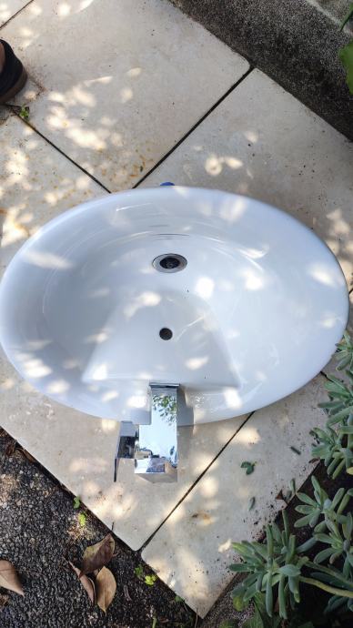 Rabljeni umivaonik sa montiranom slavinom.Umivaonik u dobrom stanju Slavina funkcionalna, ali na mjestima korodirana.