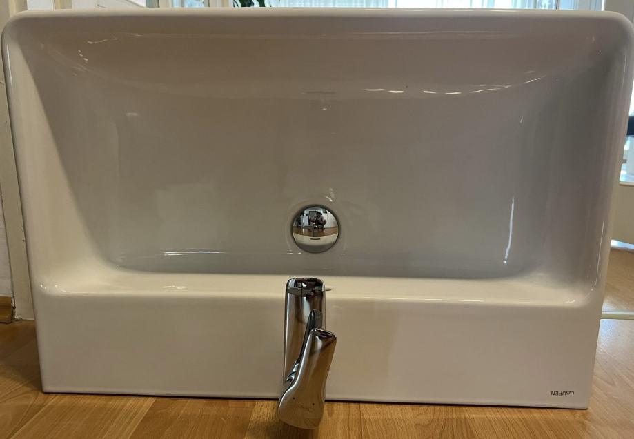 Umivaonik 70 cm Laufen sa pipom Grohe, NOVO .. nije bilo u upotrebi. Puna cijena u Ferotermu 285 € umivaonik, 90,00 € pipa… Prodajem za 285 € (pipa gratis)