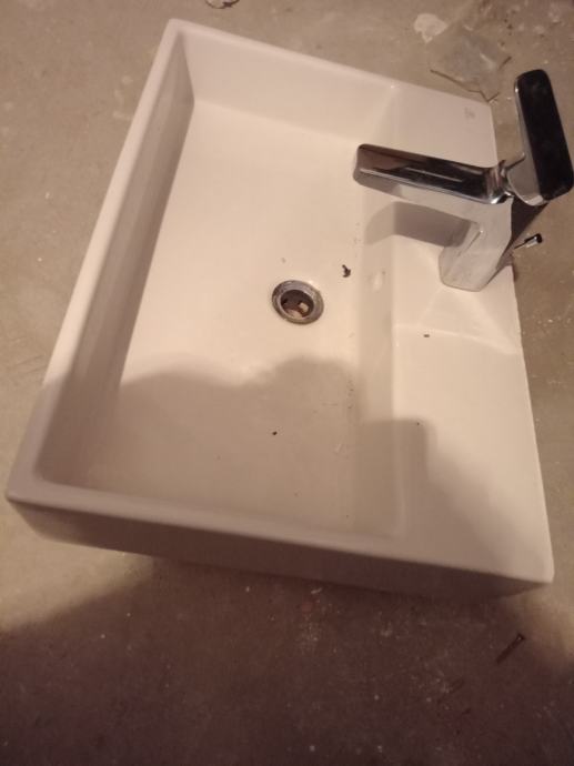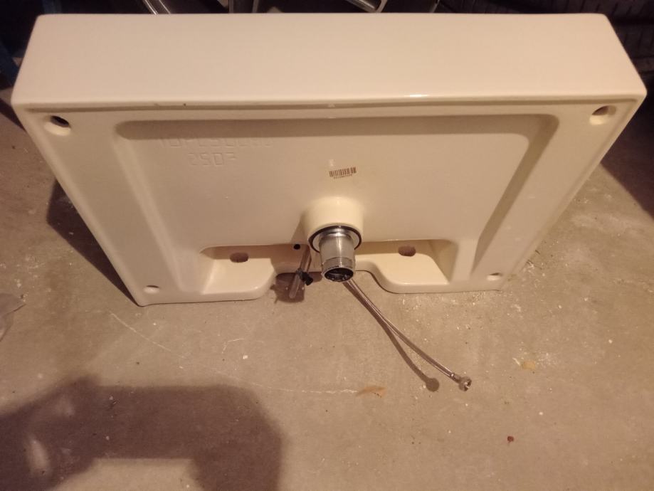 Prodajem novi keramički umivaonik bijele boje pravokutnog oblika. Radi se o modelu za zidnu montažu s ravnim, modernim linijama. Dolazi s ugrađenom slavinom od nehrđajućeg čelika te priključnim crijevima. Na stražnjoj strani nalaze se otvori za montažu na zid.