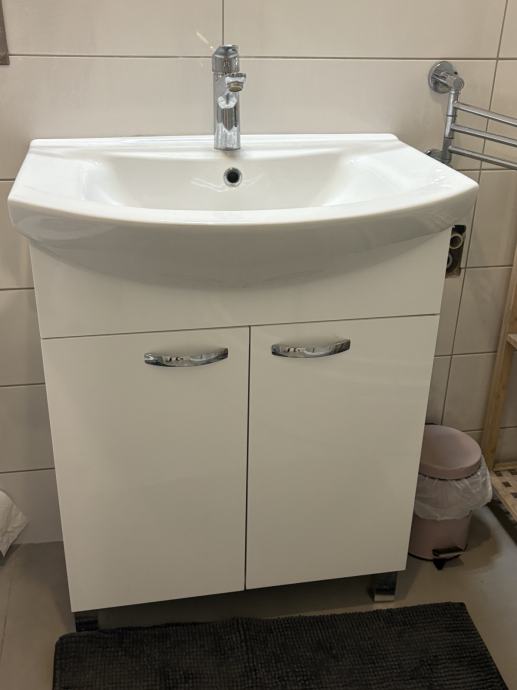 Umivaonik sa samostojećim bijelim ormarićem i vratima