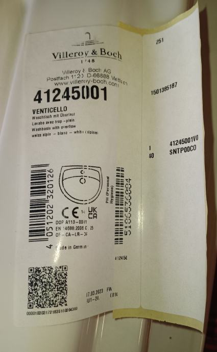 Prodajem novi umivaonik Villeroy&Boch Venticello, boja Alpin bijela, dimenzije 50/42 cm