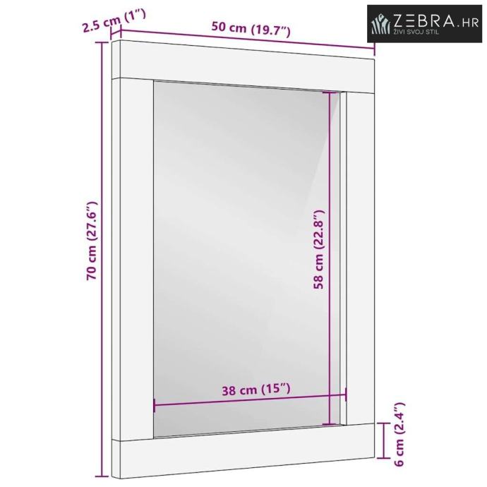 Materijali: Ogledalo je napravljeno od kvalitetnog stakla i smješteno u čvrst okvir od masivnog drva manga. Ova kombinacija osigurava dugovječnost i daje fini završni izgled, dodajući klasu u bilo koju prostoriju.