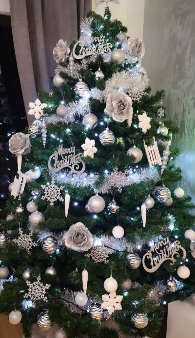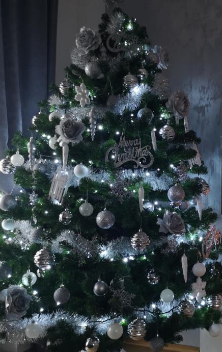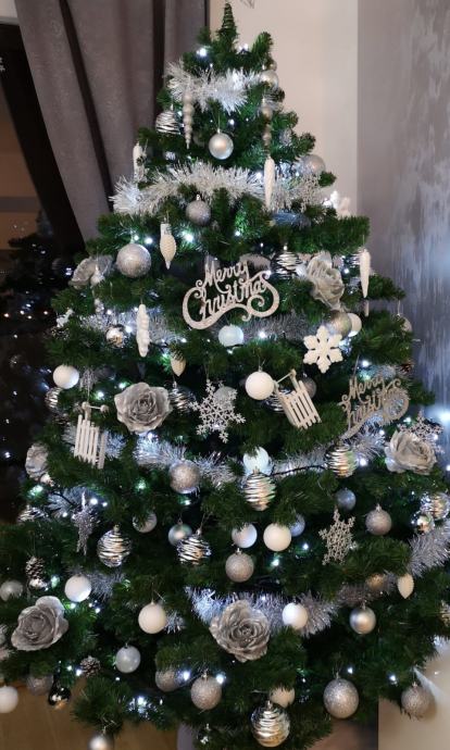 Umjetno božićno drvce visine 210 cm, prirodnog izgleda, kvalitetna izrada i gusto granje, uključen metalni stalak.