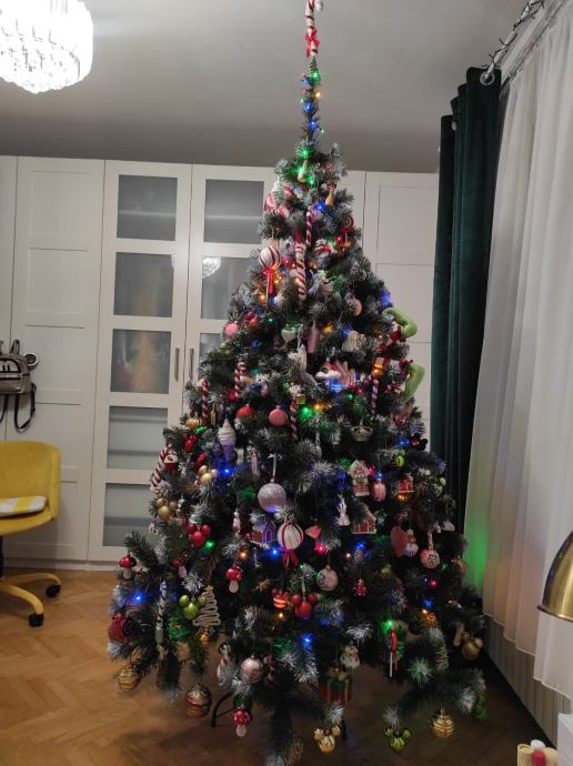 Prodajem umjetni bor 220 cm sa stalkom kupljen u 11 mjesecu 2023 godine,bor je samo dva puta bio korišten.