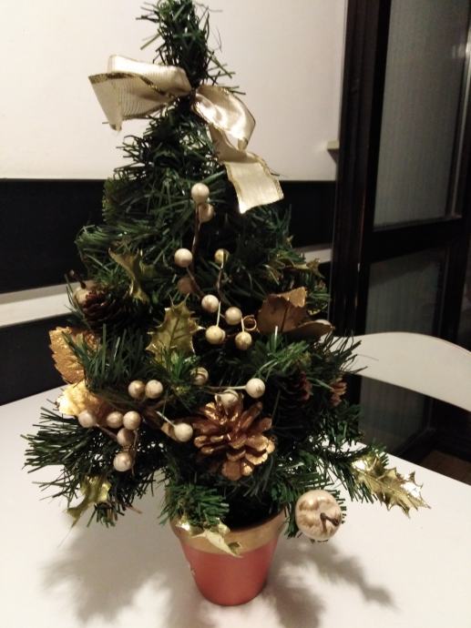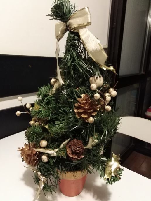 Umjetna božićna drvca s dekortacijama u tegli, visina cca, 40 cm. Cijena 5 eura /kom