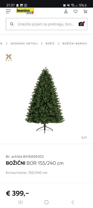 Prodajem u.jetni bor, visine 240 cm, kupljem prošle godine u Lesnini za 399 eur. Osobno preuzimanje.