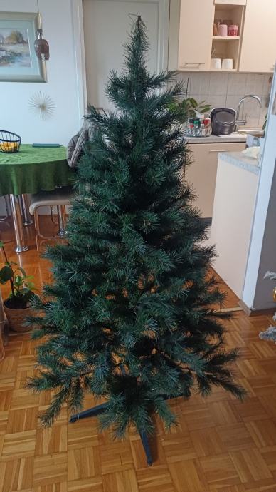 Prodajem umjetni božićni bor visine 150 cm. Bor je bez oštećenja lijepog, gustog izgleda, idealan za stan ili kuću. Jednostavno se sastavlja i rastavlja te ne zauzima puno prostora prilikom spremanja.