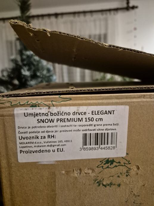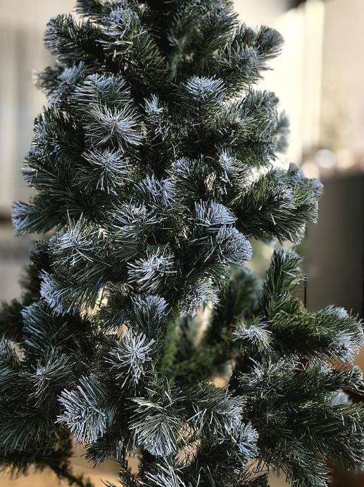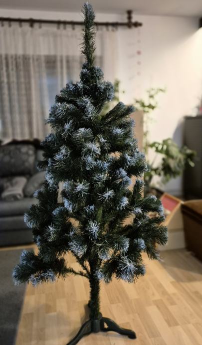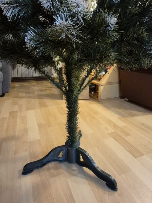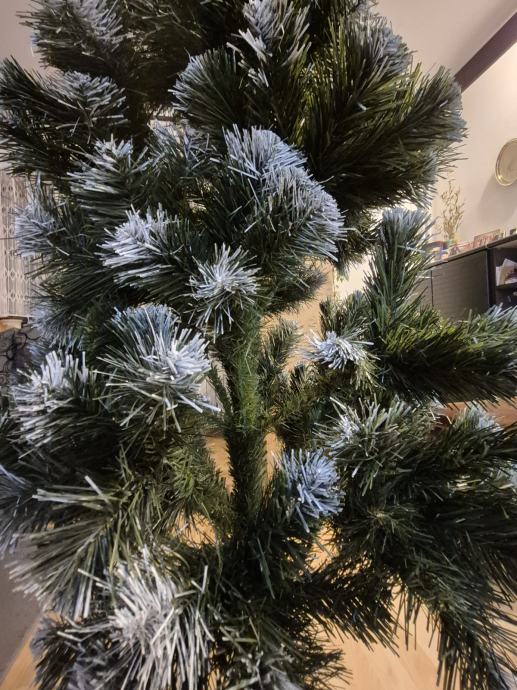 Umjetno božićno drvce,visine 150 cm, 257 grana. Vrhovi zelenih iglica su kvalitetne i postojane bijele boje . Jednostavno montiranje na stalak koji je ukljucen u paket. Originalno pakiranje. Nakaon blagdana lako se rasklopi i spremi u kutiju za iducu sezonu.