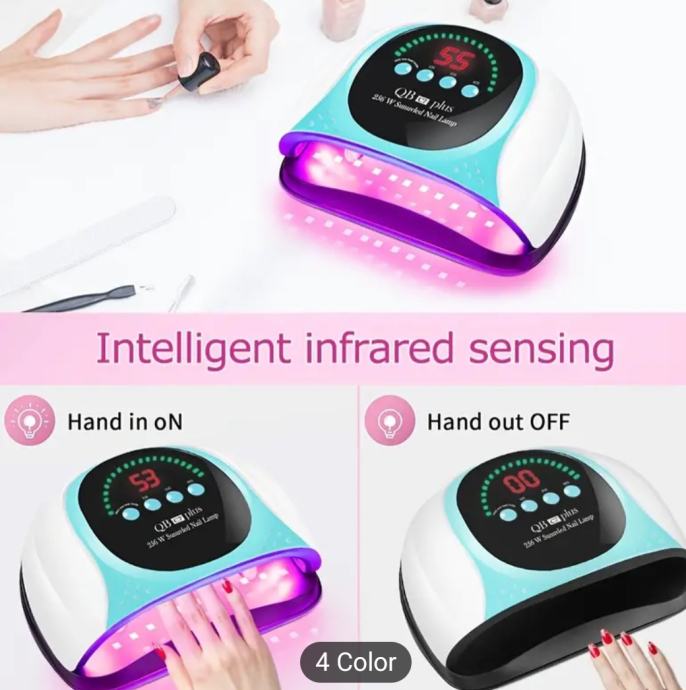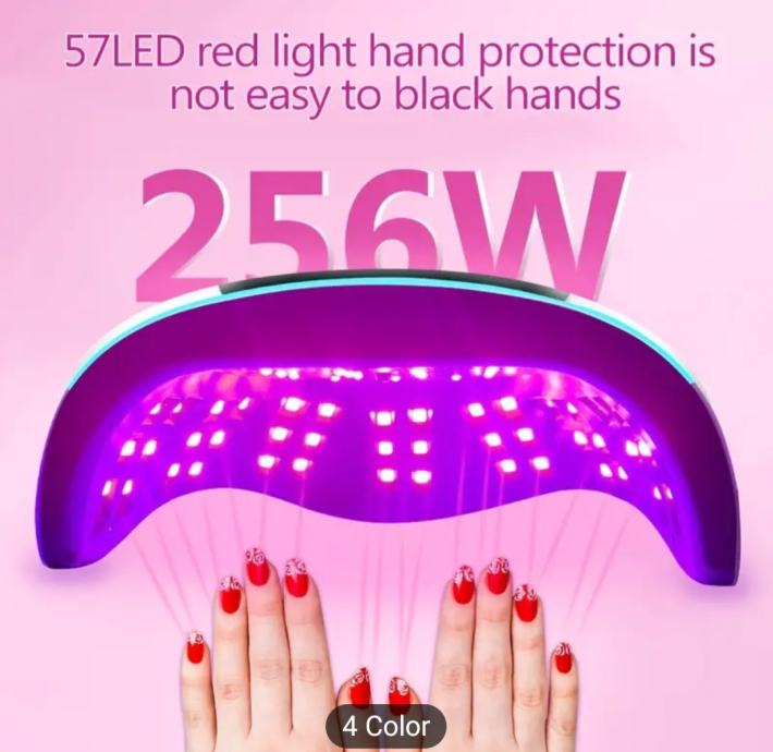 UV LED crvena svjetiljka za nokte za gel lak i trajni lak za nokte, jačine 256W, lampa je opremljena s 57 kuglica, automatskim senzorom i 4 tajmera.