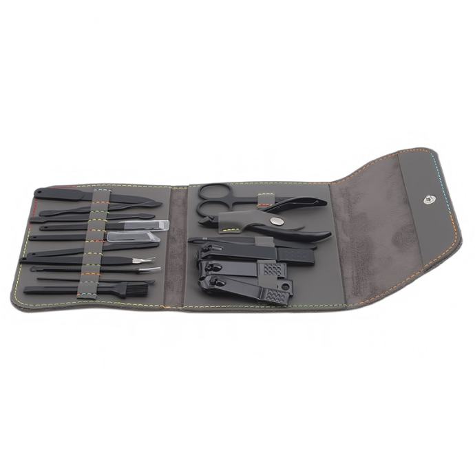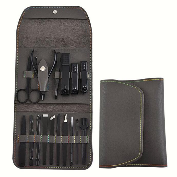 Prekrasan set za manikuru (set za nokte) u futroli od umjetne kože, dolazi u smeđoj i sivoj boji