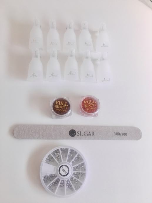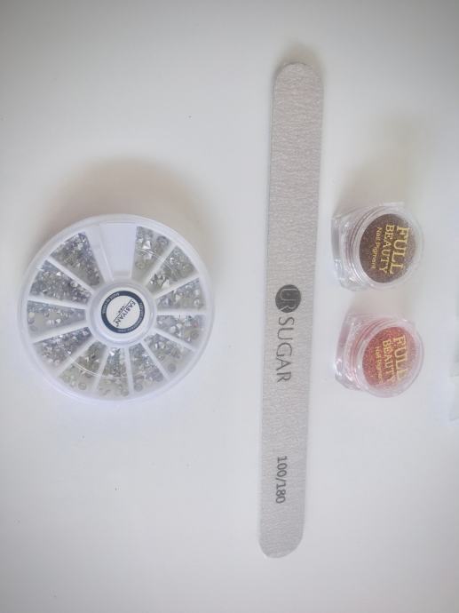 - Pigment za nokte (šljokičaste 2 kutijice) - tamno plava i crvena - oba za 10