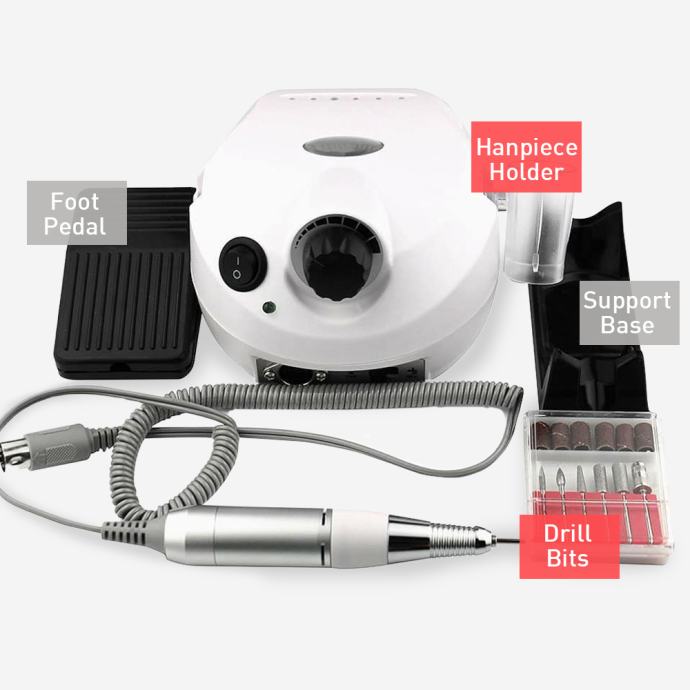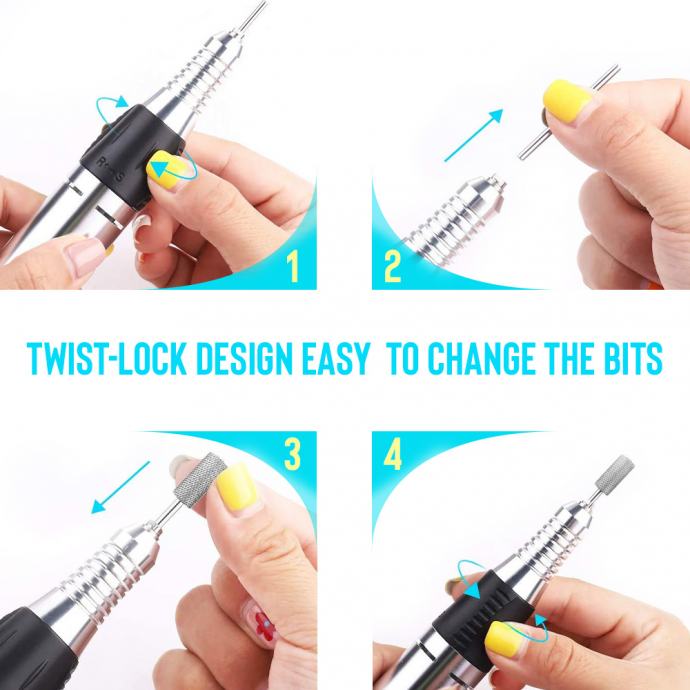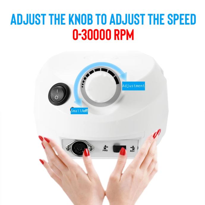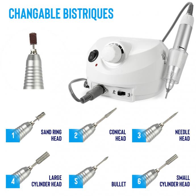 Vrh ove električne rašpice može doseći brzinu od 0 do 25.000 okretaja u minuti, a za bilo koju potrebu moguće je obrnuti smjer. Podešavanje vam omogućuje da odaberete postavku koja najbolje odgovara vašim potrebama, zadržavajući u svakom slučaju razinu vibracije na ergonomskoj dršci olovke. Šest metalnih rezervnih dijelova u pakiranju također vam omogućuje izvođenje različitih vrsta tretmana na noktima, osiguravajući različite načine uporabe.