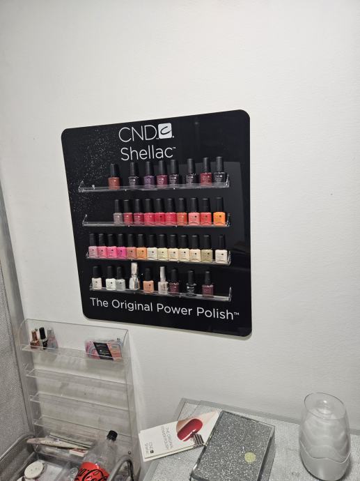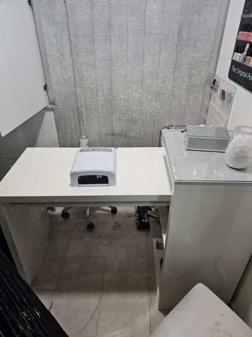 Prodajem stol za nokte bijeli visoki sijaj ,plus gratis zidni stalak orginal shellac za trajne lakove