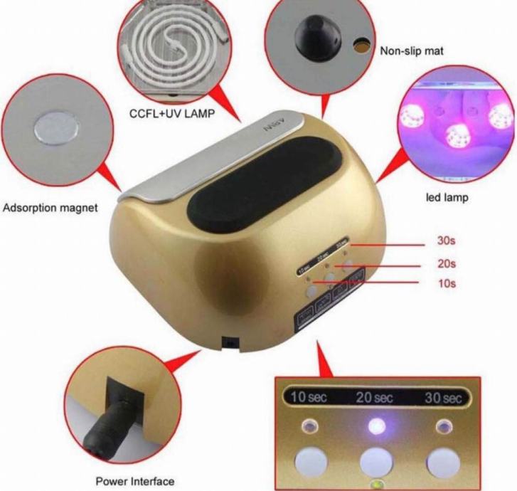 Štedljivi tajmer :10, 20 ,30 sekundi brzo suši sve vrste gelova .