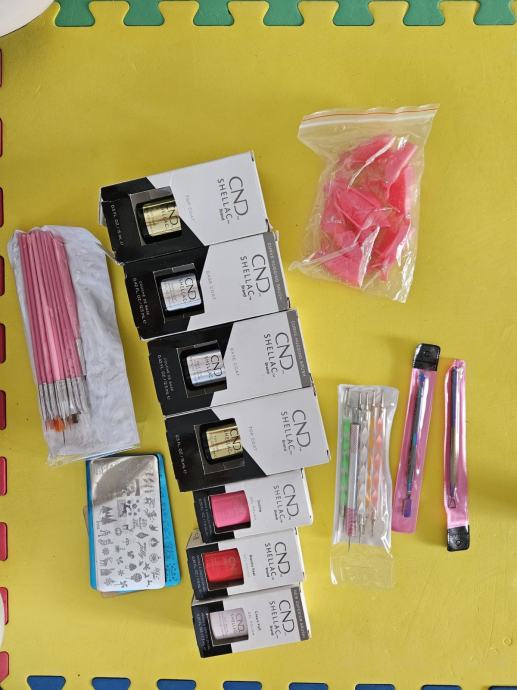 Plus set za nokte koji ukljucuje: 7 CND laka, sablone, klipove i kistove.