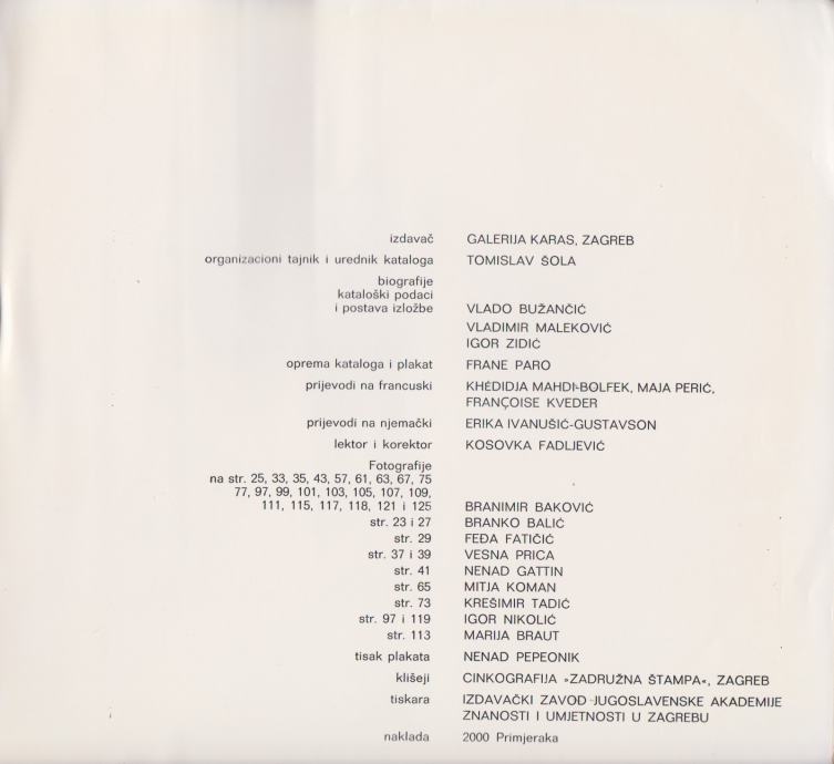 3 teme iz suvremene hrvatske umjetnosti, Galerija Karas, Zagreb 1973.