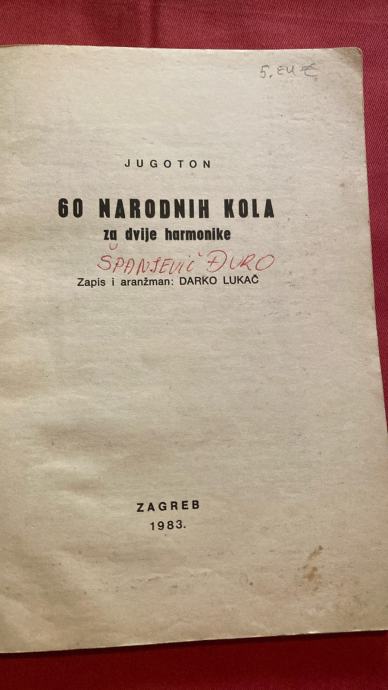 60 NARODNIH KOLA ZA DVIJE HARMONIKE, JUGOTON