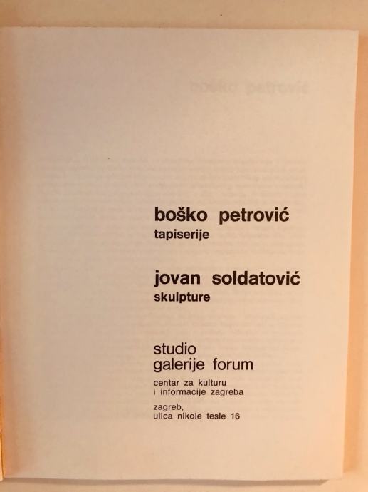 Boško Petrović ,Jovan Soldatović - katalog izložbe galerije Forum