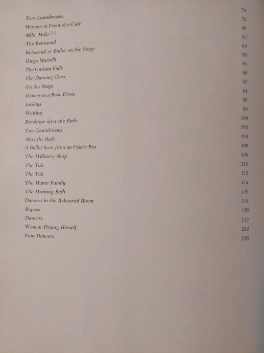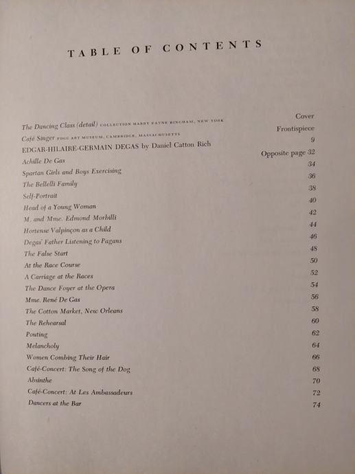 Sadrži monografski pregled umjetničkih djela Edgara Degasa, čiji je autor Daniel Catton Rich, urednik Miltona S. Foxa.