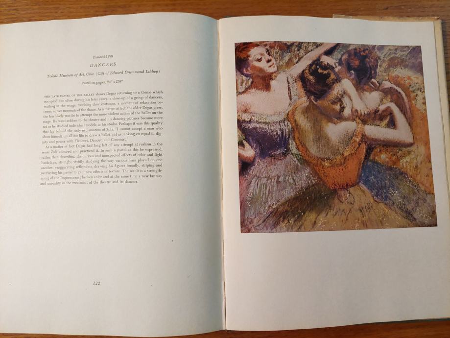 Ova " Degas : Knjižnica velikih slikara " rijetko prvo izdanje litografije iz 1951., kolekcionarska impresionistička umjetnička knjiga Edgara Degasa velikog tvrdog uveza vrlo je posebna i jedinstvena knjiga.