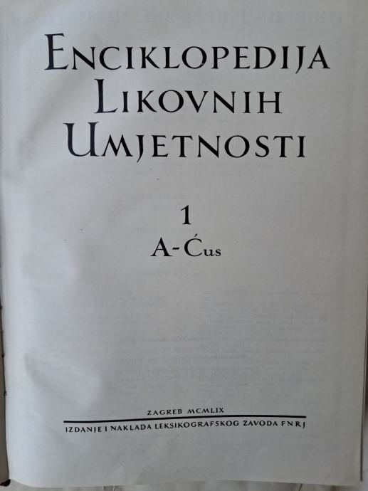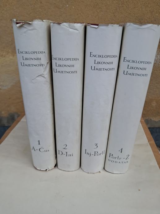 Prodajem očuvanu enciklopediju likovnih umjetnosti, komplet iz 4 dijela, broj stranica 755,699,714,693 dimenzija 22 x 29.5 , tvrdi uvez s ovitkom izdavača Leksikografskog zavoda FNRJ, Zagreb, godina izdanja 1960 - 1966.