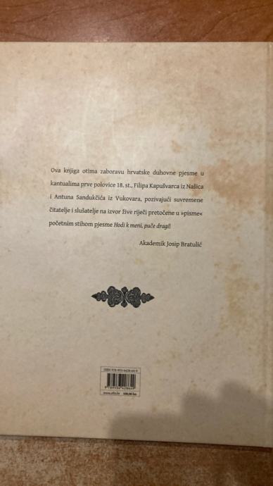 Hrvatske duhovne pjesme franjevsckih rukopisnih kantuala prve polovice 18. stoljeća u Slavoniji i Srijemu, 223 stranice, tvrdi uvez, vrlo dobro do odlično očuvana
