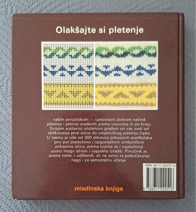 Ovaj priručnik sadrži cjelovitu zbirku načina pletenja i pletiva izrađenih prema uzorcima ili po kroju. U njemu je više od 300 slikovno prikazanih predložaka prvi put predočeno i razgovijetnim simboličkim prikazima očica, prema kojima se i najsloženiji uzorci mogu očitati i uspješno izraditi.