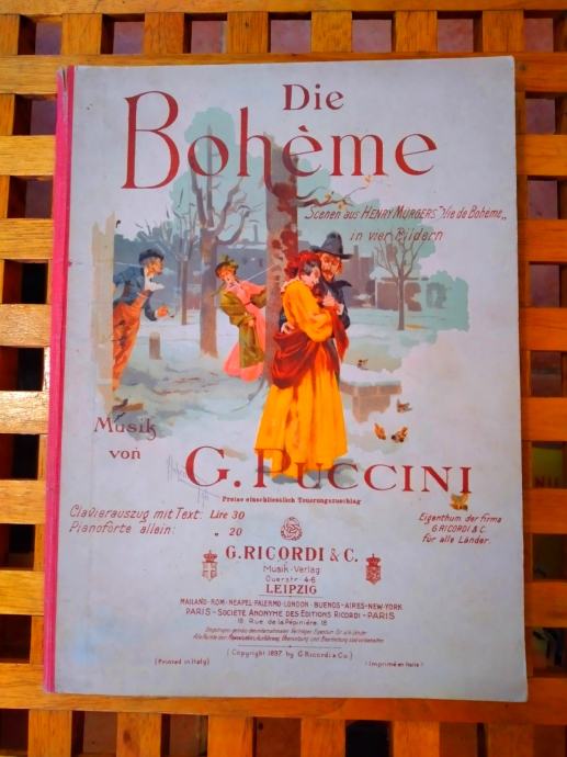 NOTE KNJIGA G. PUCCINI DIE BOHEME LEPZIG 1897 PIANO