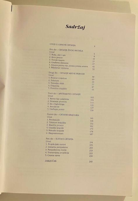 Pomno osmišljen tečaj crtanja za početnike, ali i one koji žele usavršiti svoju vještinu. Knjigu su osmislila dvojica likovnih umjetnika, svaki s više od dvadeset godina predavačkog iskustva na londonskim likovnim akademijama. Pet dijelova knjige obuhvaća crtanje po živom modelu, crtanje mrtve prirode, pejzaža, apstraktno crtanje te sustave crtanja. Svaki dio je podijeljen na poglavlja u kojima se od osnovnih vještina prelazi na naprednije postupke.
