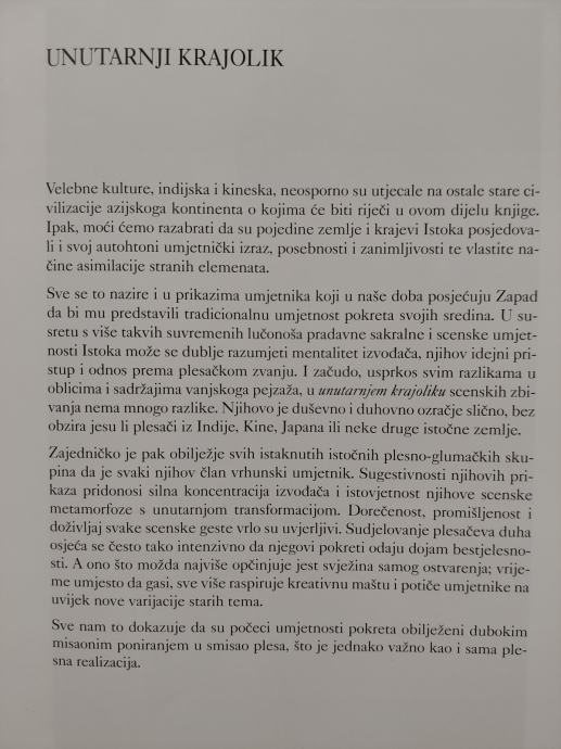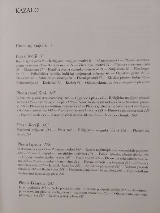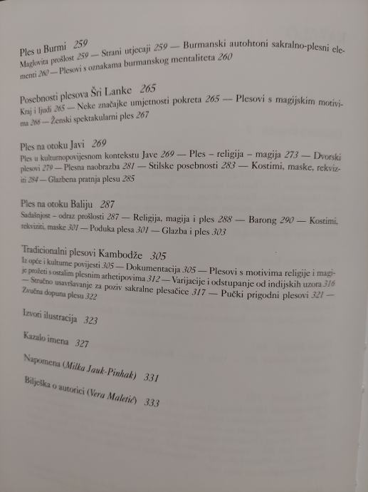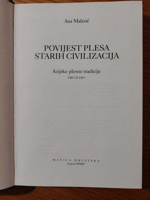 Nakon prvoga dijela dvosveščane Povijesti plesa starih civilizacija u kojemu je autorica obradila plesnu kulturu već izumrlih civilizacija Mezopotamije, Egipta, Grčke, Rima, te plesove starih Hebreja i Etrušćana, drugi dio autoričina životnoga djela obuhvaća stare civilizacije čija se plesna tradicija održala sve do naših dana, zahvaljujući geografskome položaju ili kulturnopovijesnim uvjetima. To su Indija, Kina, Koreja, Japan, Tajland, Burma, Šri Lanka, Java, Bali i Kambodža. Obajvljivanjem ove sjajno napisane i opremljene knjige napokon je ispravljena velika nepravda prema dvadesetak godina starom i zaboravljenom rukopisu Ane Maletić u kojemu se na genijalan način stapaju tehnička obrada plesova s kulturnopovijesnim, filozofskim, sociološkim, religijskim, mitološkim te s drugim ekskursima i elaboracijama.