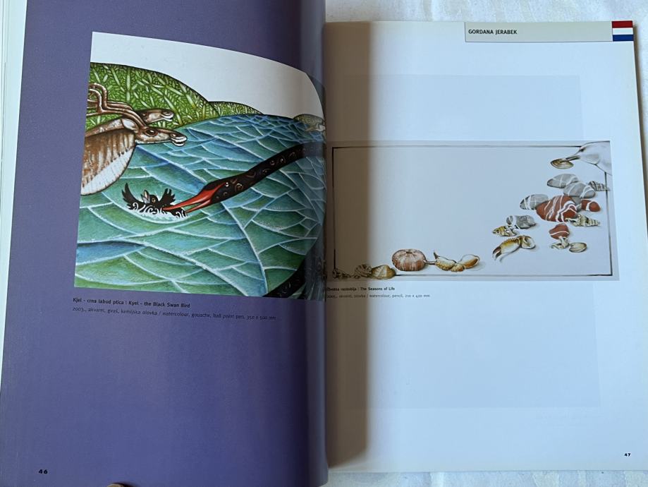 Katalog izložbe "Prvi hrvatski biennale ilustracije" održane u Galeriji Klovićevi dvori u periodu od 6. lipnja do 30. srpnja 2006. godine sadrži radove likovnih umjetnika iz Austrije, Hrvatske, Irana, Italije, Slovačke i Slovenije. Osvrt na izložbu i ilustraciju, uopće, kao uvod u sam katalog potpisuje Koraljka Jurčec Kos. Njezinom tekstu slijedi predstavljanje samih ilustratora s po jednim radom i kratkom biografijom svakog od njih, kao i tekstom o ilustraciji u zemlji iz koje autor dolazi. Tekst kataloga paralelno je objavljen na hrvatskom i engleskom jeziku. Na kraju je objavljen popis svih izloženih radova.